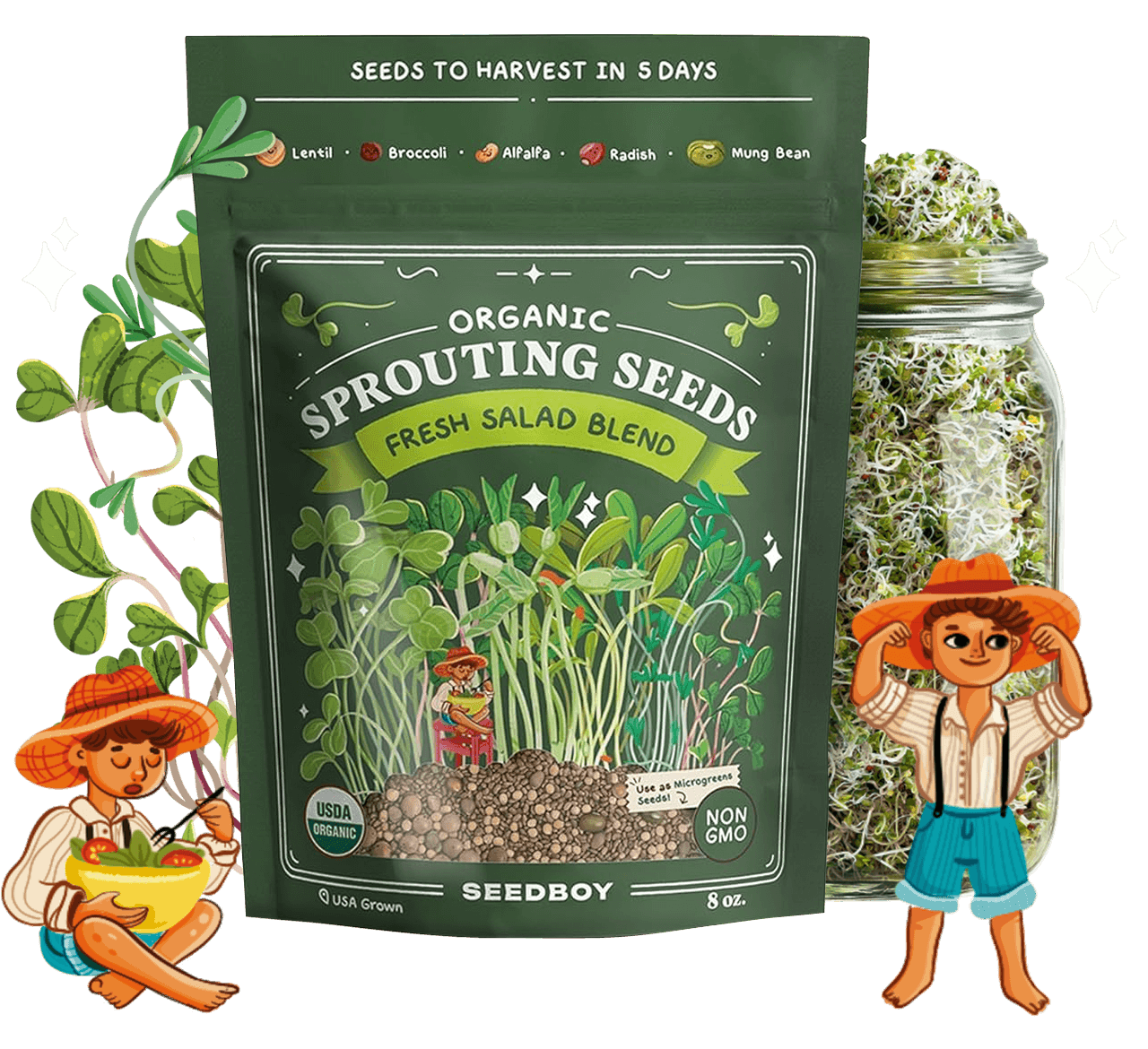 Fresh Salad Blend Sprouting Seeds, Organic & Non-GMO – 8 oz Bag