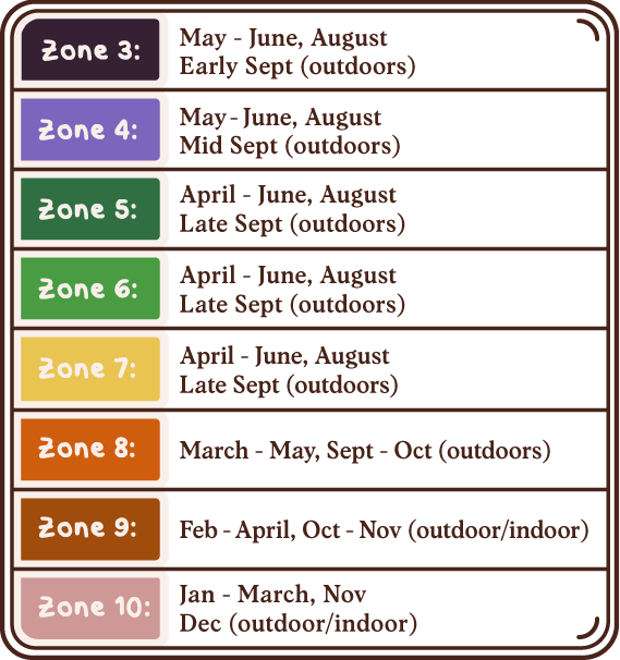 Grows best in cool conditions but needs full sun or light shade in hotter climates. If growing indoors, a window that offers ample morning light is ideal.