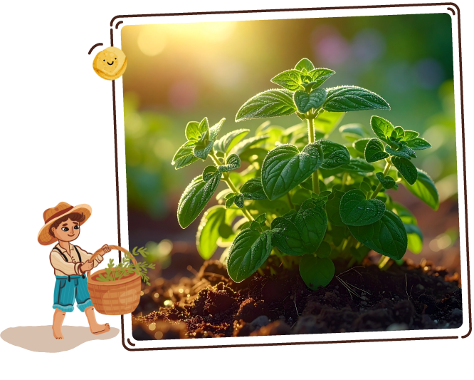 A hardy herb with petite, fuzzy, oval-shaped leaves that exude a subtle minty fragrance.