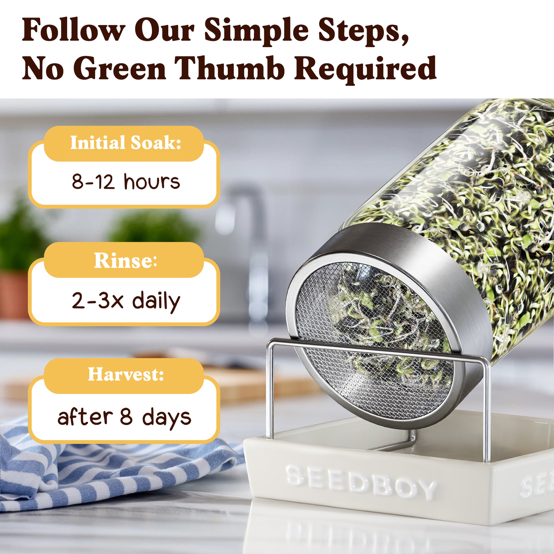 - One Bag = 5 Quarts of Fresh Sprouts (15 Large Servings)